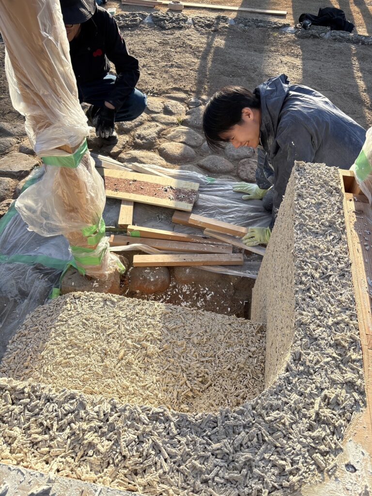 今回は初めての遠方でのヘンプクリート作業でしたが、無事型枠を外すところまで期間内に終えられて良かったです。